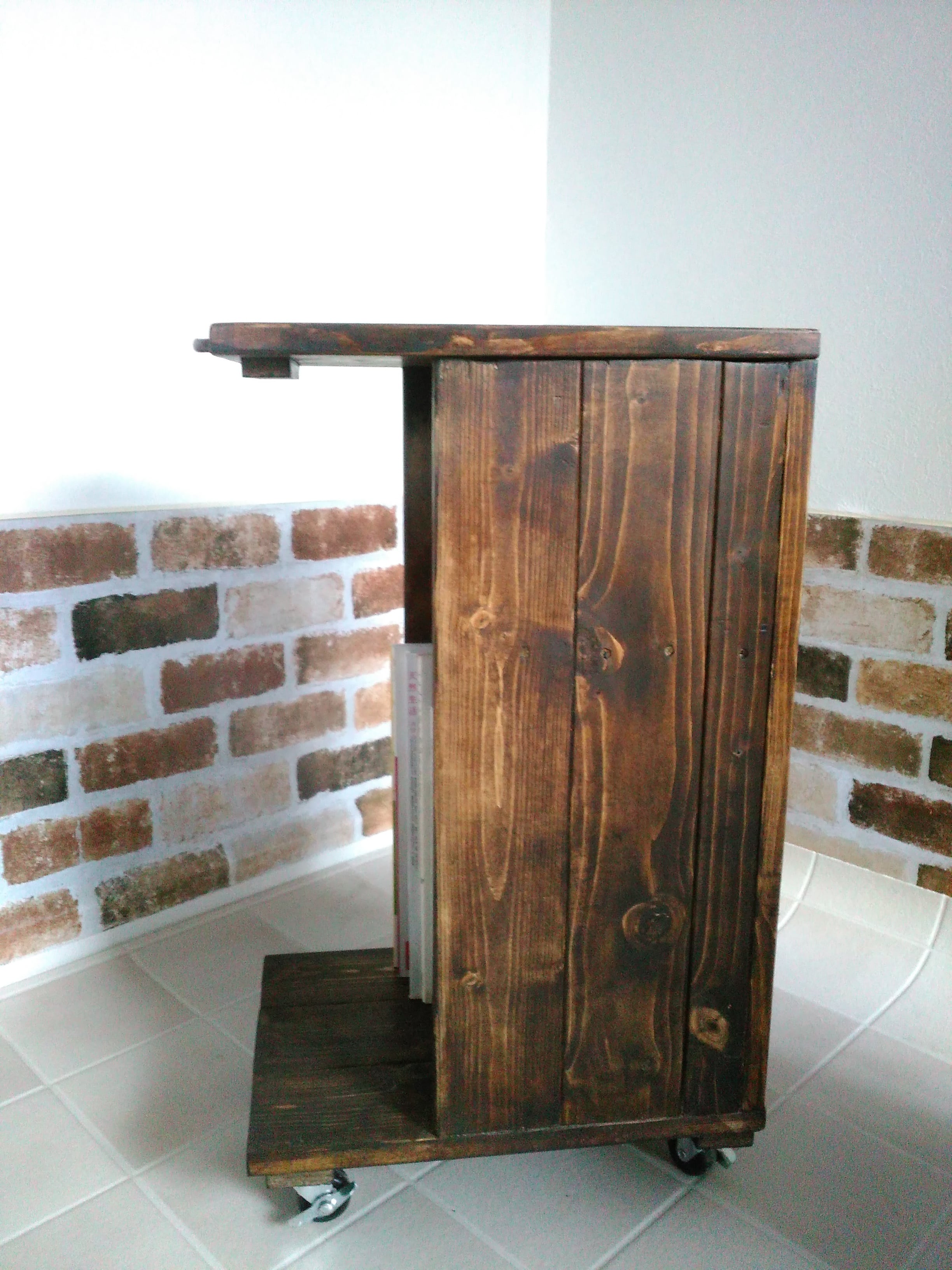 シンプルで飽きのこないデザインのキャスター付きサイドテーブルです。
