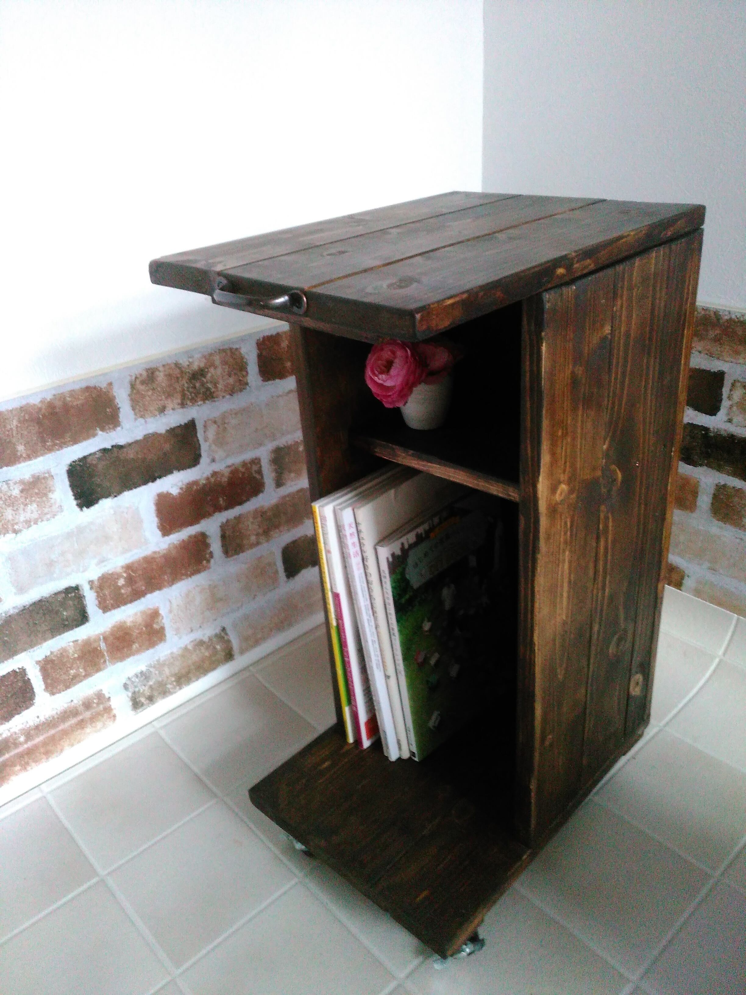 上部の蓋を上にオープンでき、小物など取り出しやすくしました。