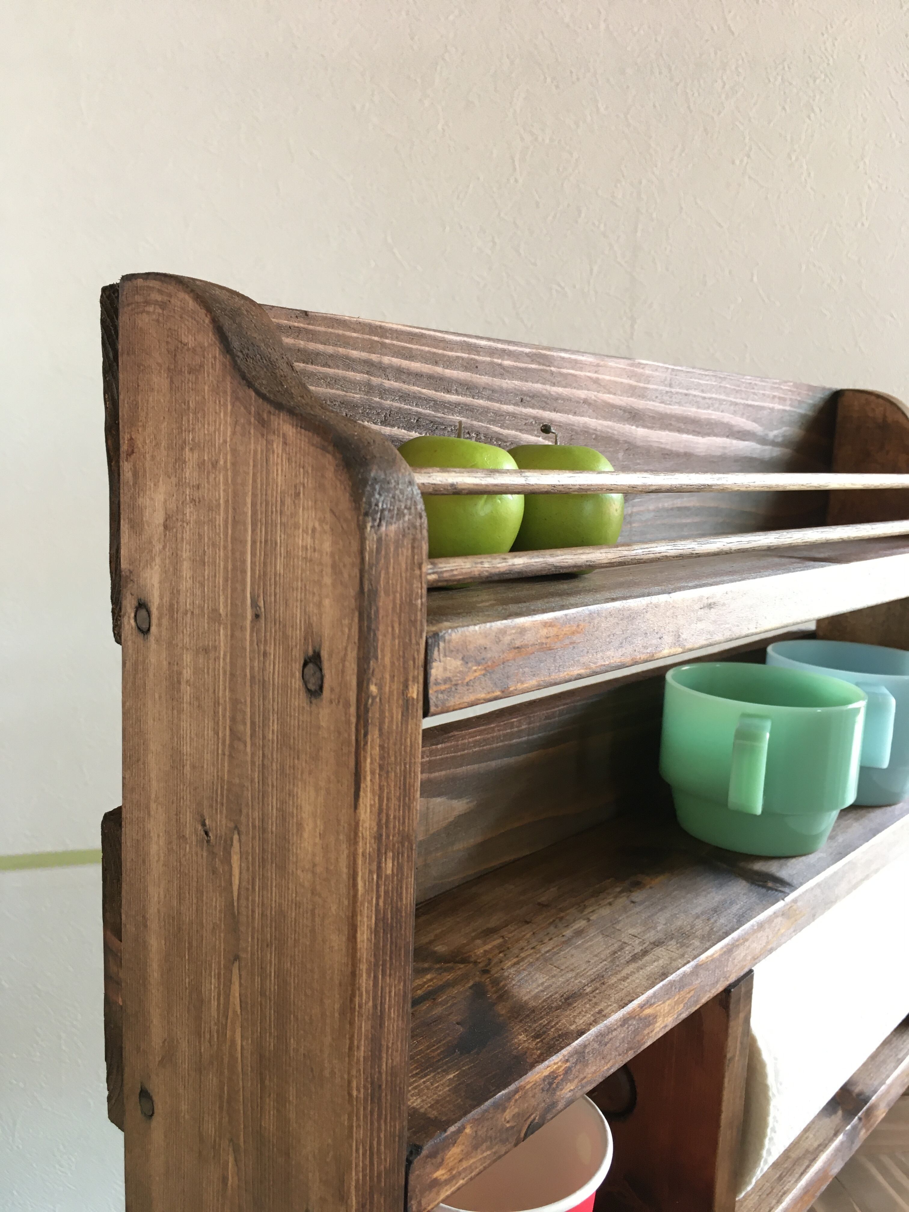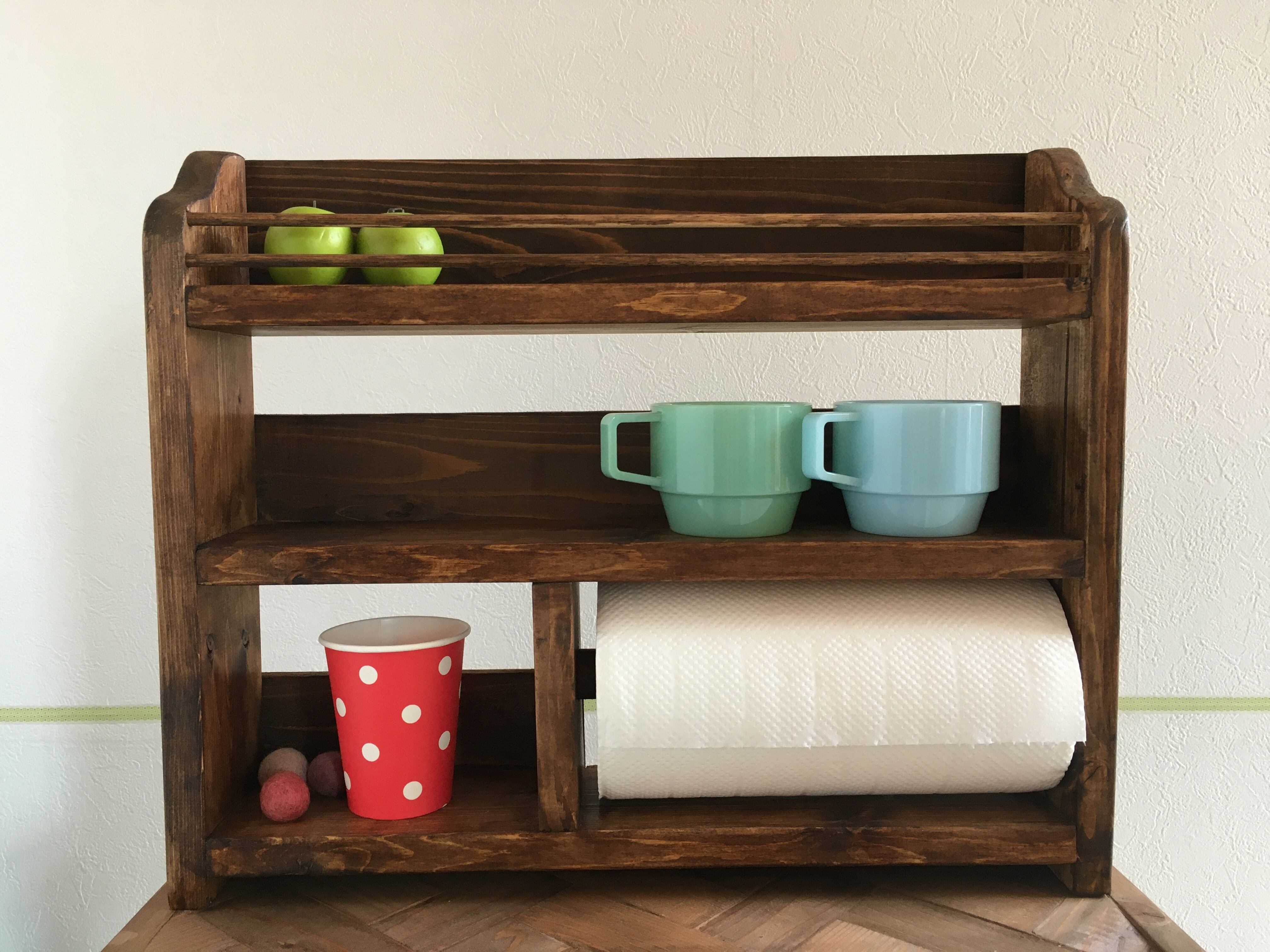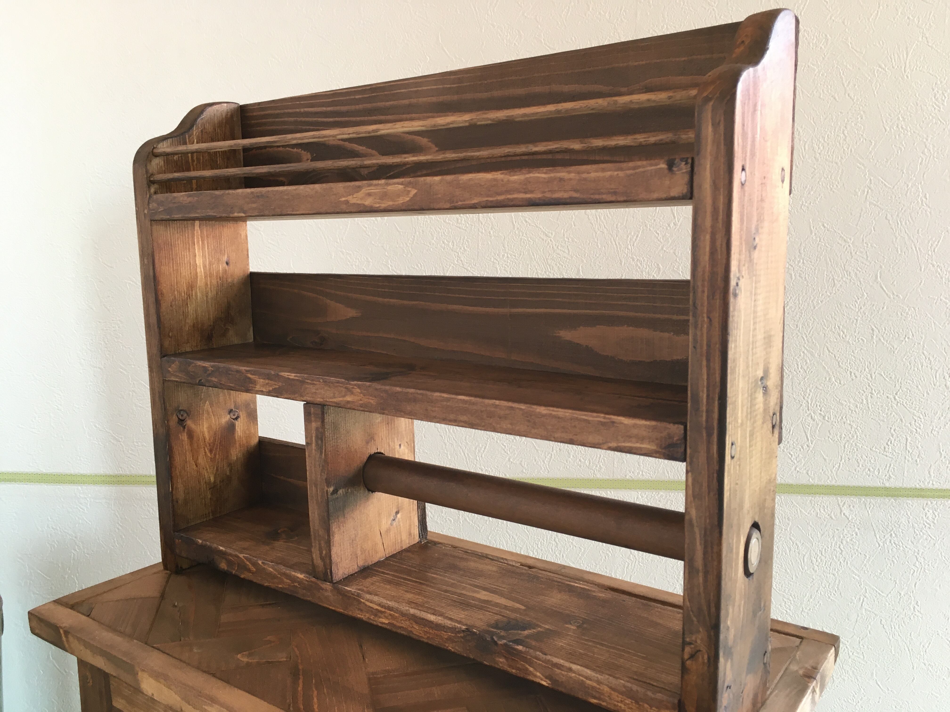 キッチンペーパー掛け付きのかわいいスパイスラックです。